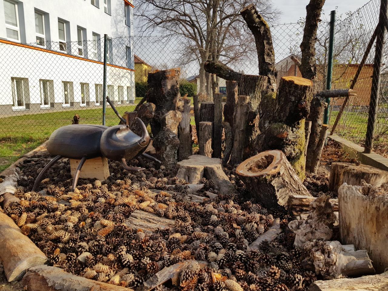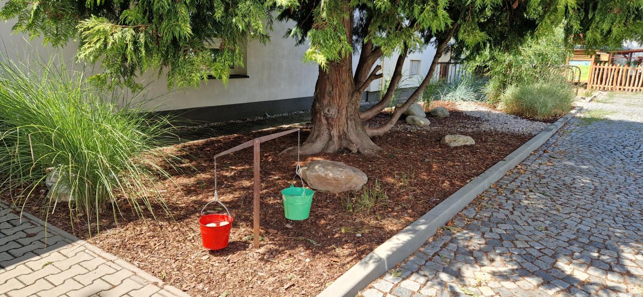 Mnoho volného prostoru a zákoutí pro volnou hru, zkoumání přírodních jevů ale i pro rozvoj pohybových dovedností naleznou děti na naší školní, přírodní zahradě.